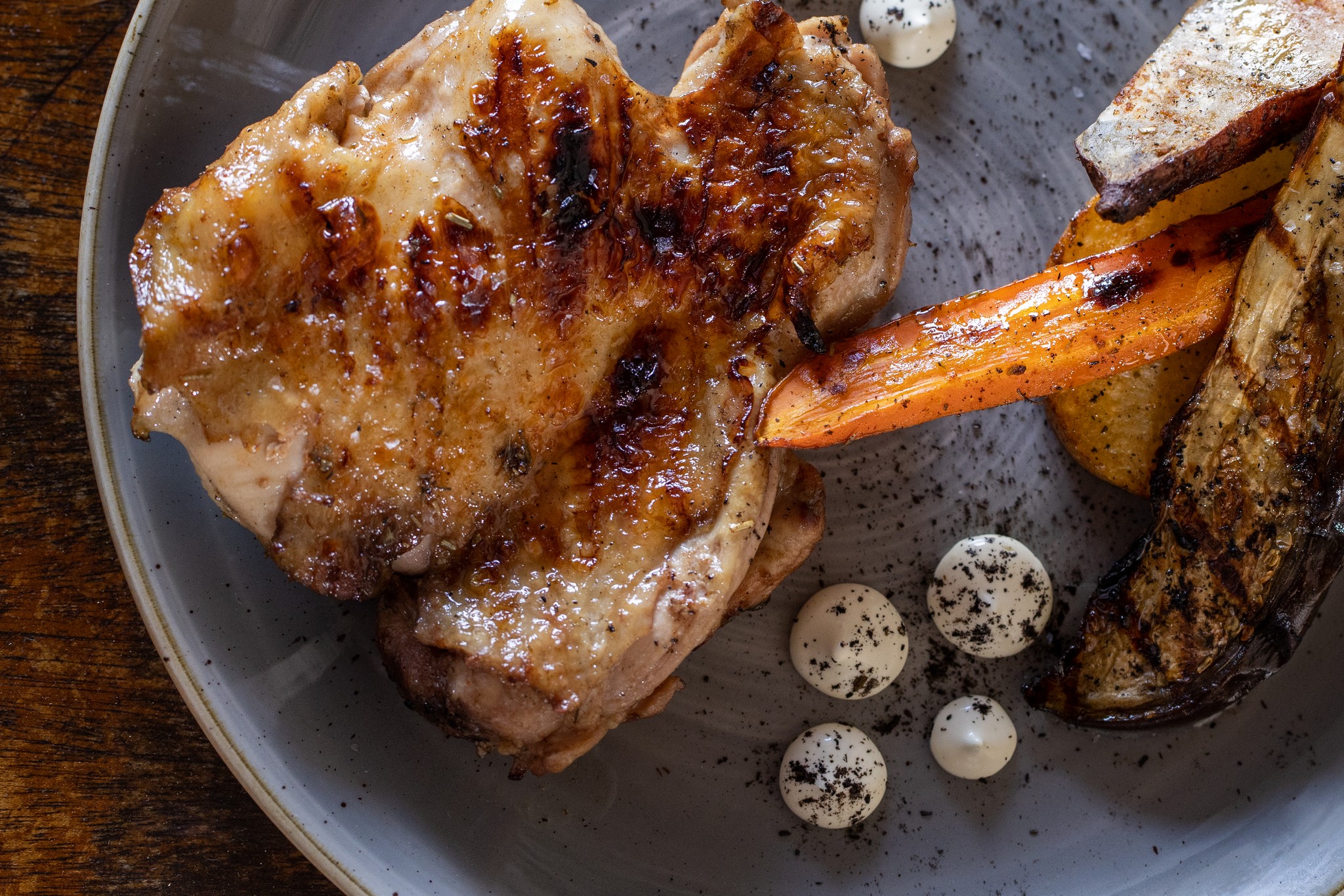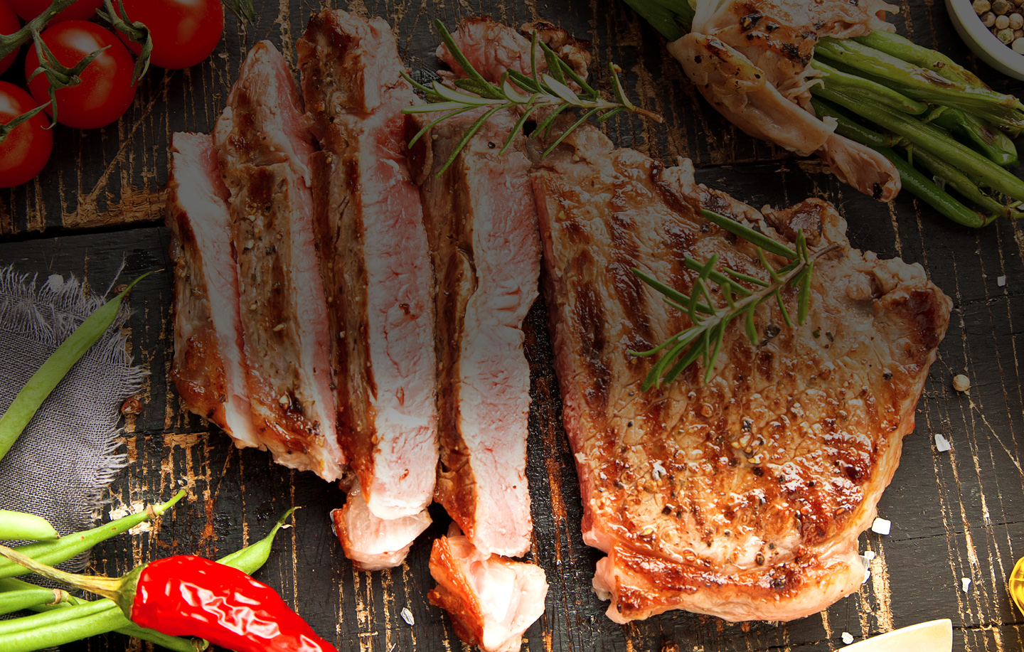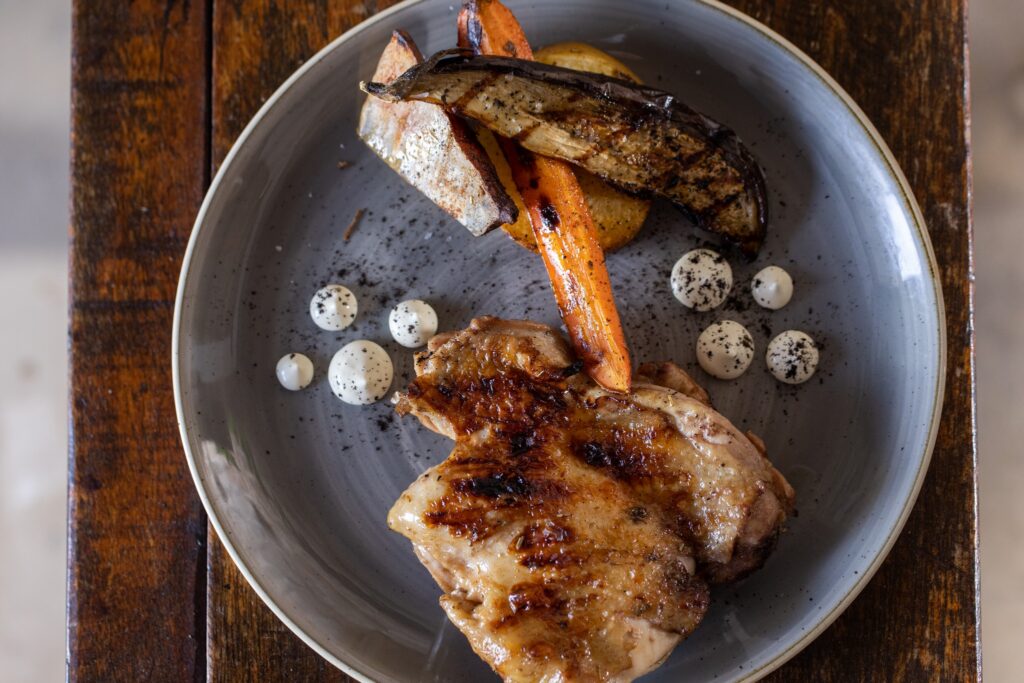 La especialidad en asados, el chuletón, pasando por el solomillo de vaca, el entrecot, pollo…
